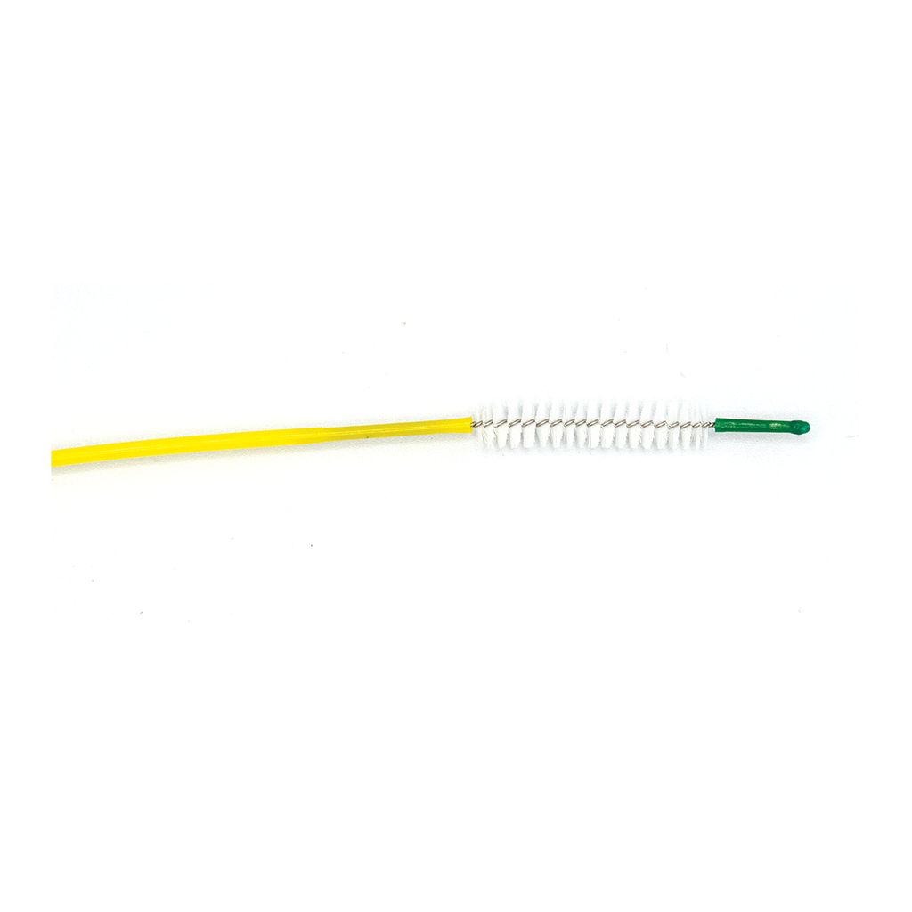 Cepillo diseñado para limpiar zonas de difícil acceso de dispositivos endoscópicos con cerdas suaves.