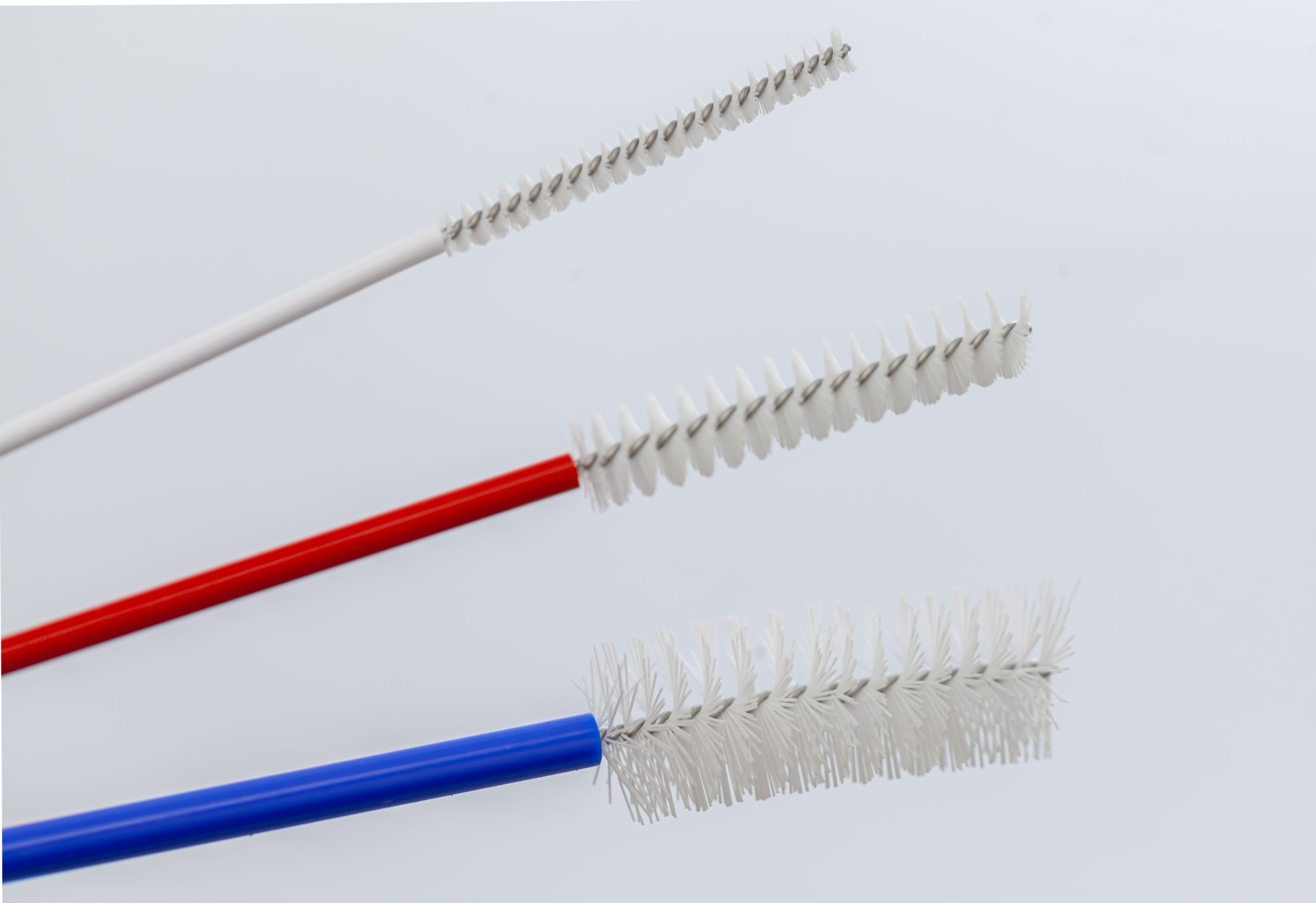 Cepillo quirúrgico para lavado de instrumental quirúrgico y dispositivos médicos canulados.