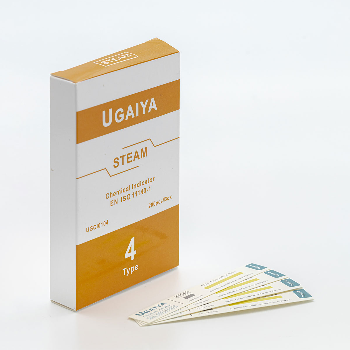 Indicadores químicos de esterilización multiparámetro tipo 4 fabricados con tinta especial sensible al calor viran de amarillo a negro luego de la exposición a vapor saturado después de un exitoso ciclo de esterilización.